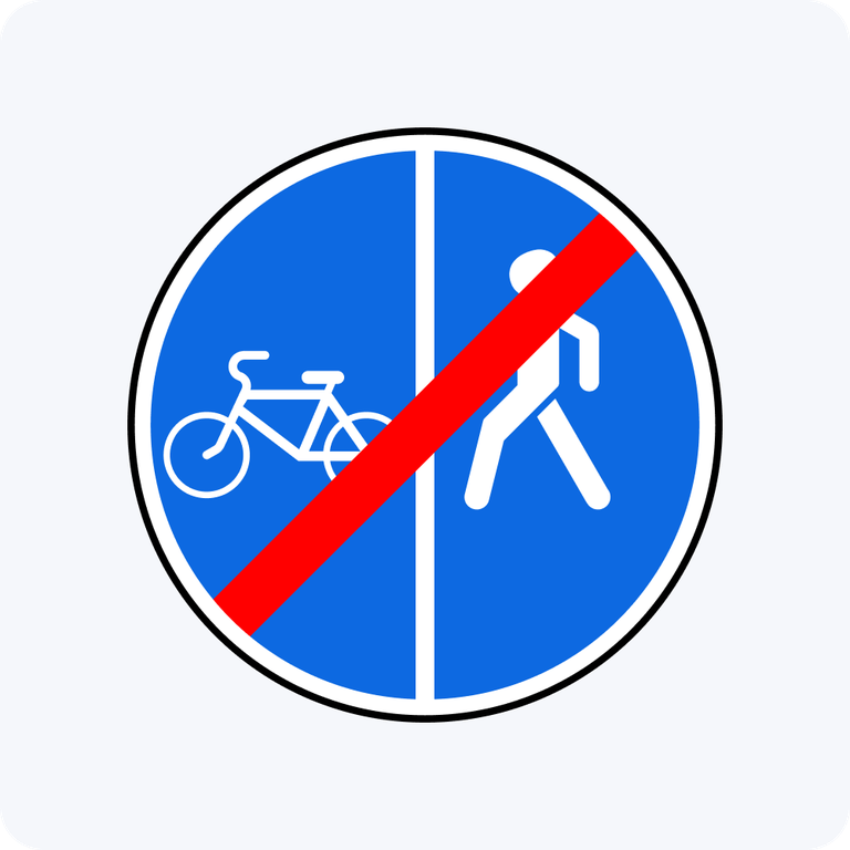 Дорожные знаки 4.5.6, 4.5.7 Конец пешеходной и велосипедной дорожки с разделением движения