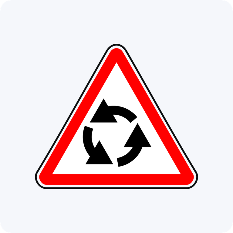 Описание знака: Черные стрелки по кругу в белом треугольнике с красной окантовкой