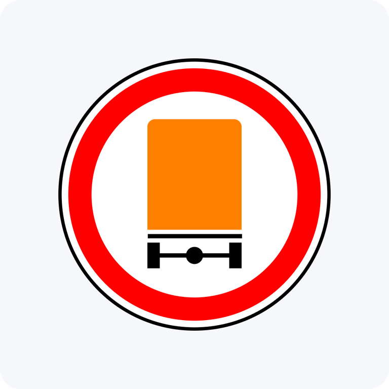 Описание знака: Желтый грузовик на белом круге с красной рамкой.