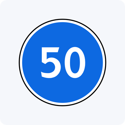 Разрешается движение только с указанной или большей скоростью (км/ч).Зона действия: до знака 4.7 «Конец зоны ограничения минимальной скорости». Не путайте этот знак со знаком 6.2 «Рекомендуемая скорость».