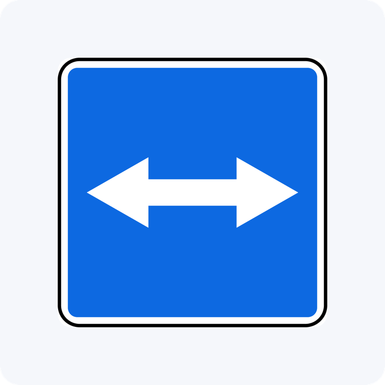 Описание знака: Двухсторонняя белая стрелка влево вправо на синем фоне.
