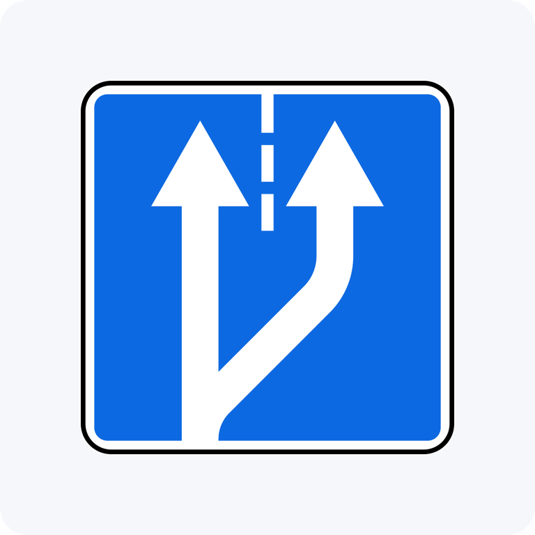 Описание знака: Разделение белых стрелок на синем фоне в квадрате.
