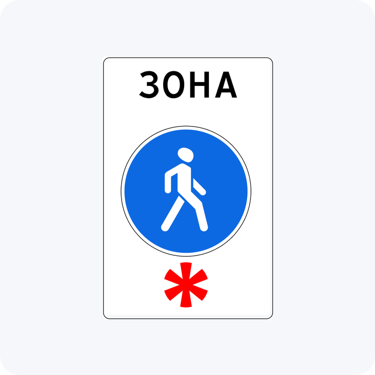 Место, с которого начинается территория (участок дороги), на которой разрешено движение пешеходов, и в случаях, установленных пунктами 24.2 - 24.4 настоящих Правил, велосипедистов.Зона действия обязательно до знака 5.34 «Конец пешеходной зоны».