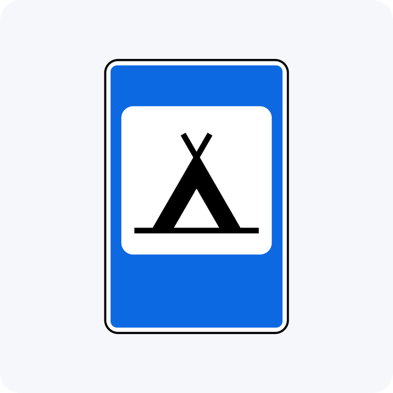 Описание знака: Палатка в белом прямоугольнике на синем фоне.