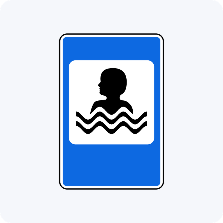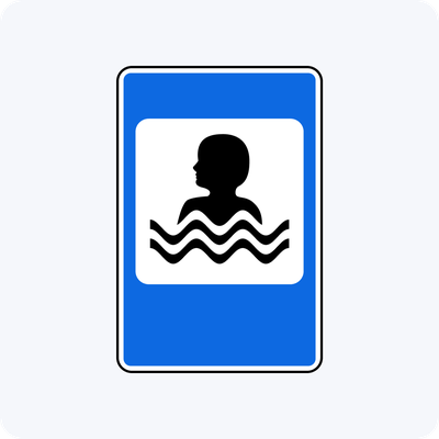 Описание знака: Человек купается в белом прямоугольнике на синем фоне.