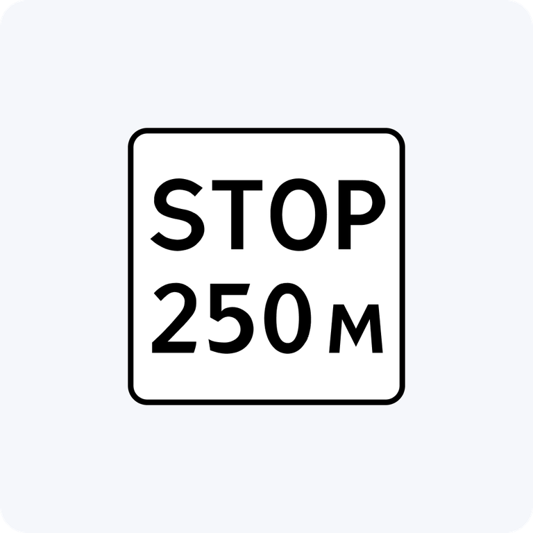 Указывает расстояние от знака 2.4 до перекрестка в случае, если непосредственно перед перекрестком установлен знак 2.5.