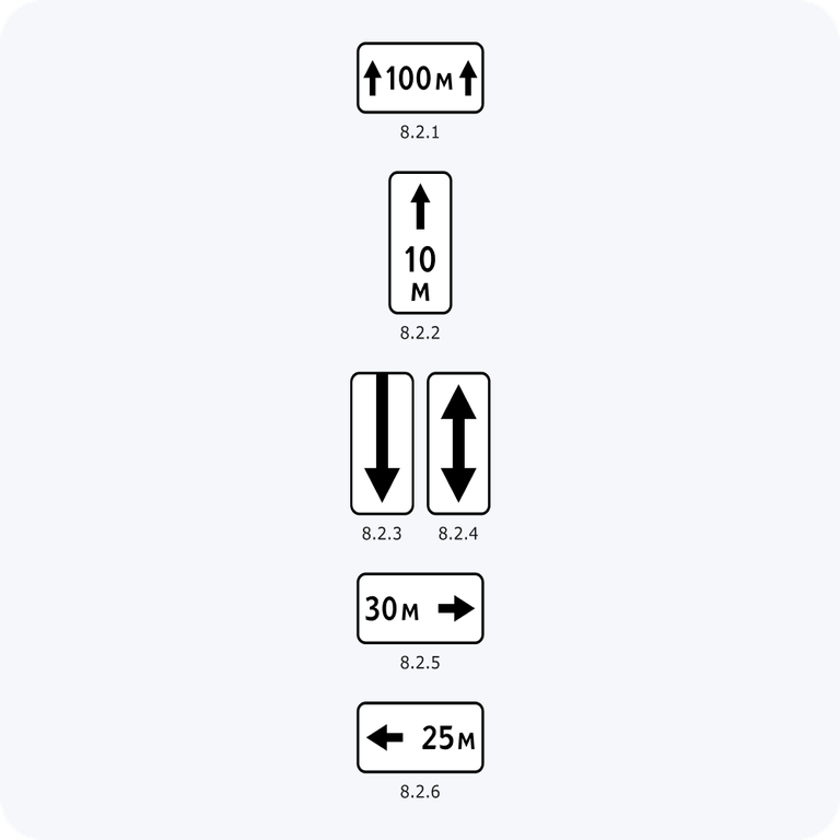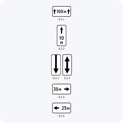 Дорожные знаки 8.2.1, 8.2.2, 8.2.3, 8.2.4, 8.2.5, 8.2.6 Зона действия