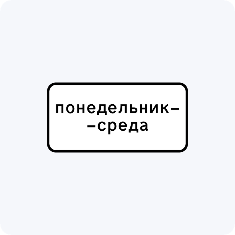 Описание знака: Надпись понедельник-среда на белом фоне.